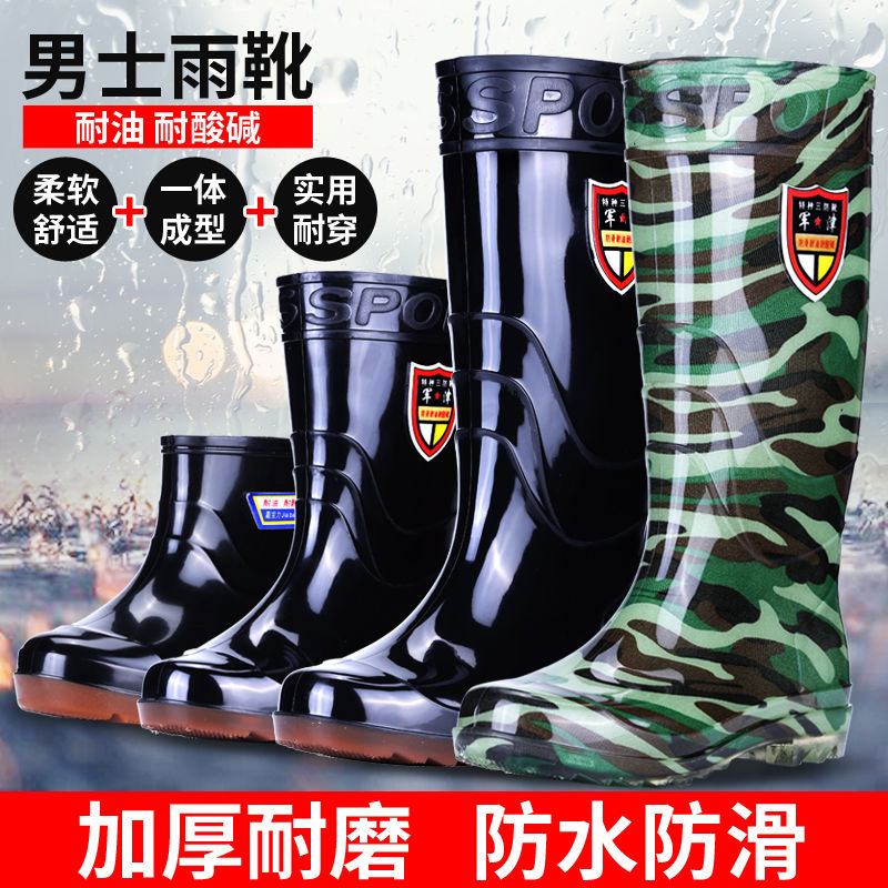 junjin cow tendon bottom waterproof rain boots men's high-top water shoes men's construction site rubber shoes rain boots short water boots kitchen shoes men's non-slip junjin cow tendon bottom-low tube [no cotton cover] 658 +38