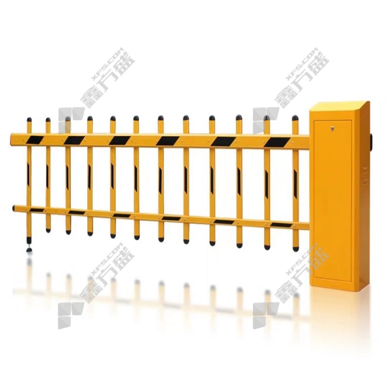 License plate recognition intelligent toll system integrated machine for new rural vehicles. Parking barrier for community with lifting rod, straight rod boom gate model in yellow color, no specific size.