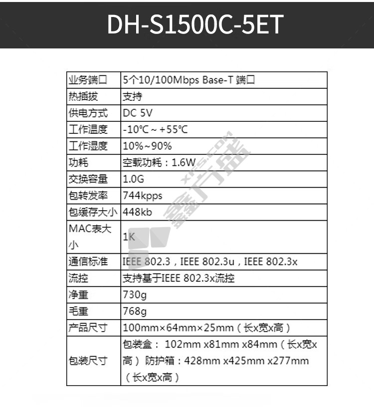 DAHUA surveillance engineering switch unspecified specifications
