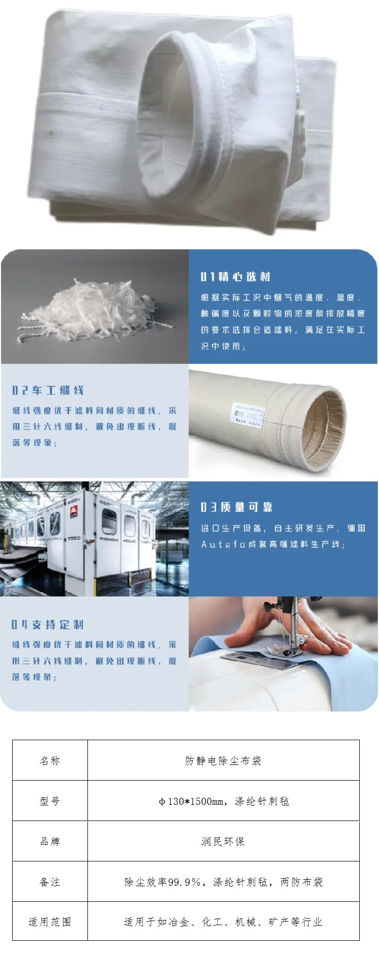 runmin environmental protection anti-static dust bag φ130*1500mm, polyester needle felt no specifications
