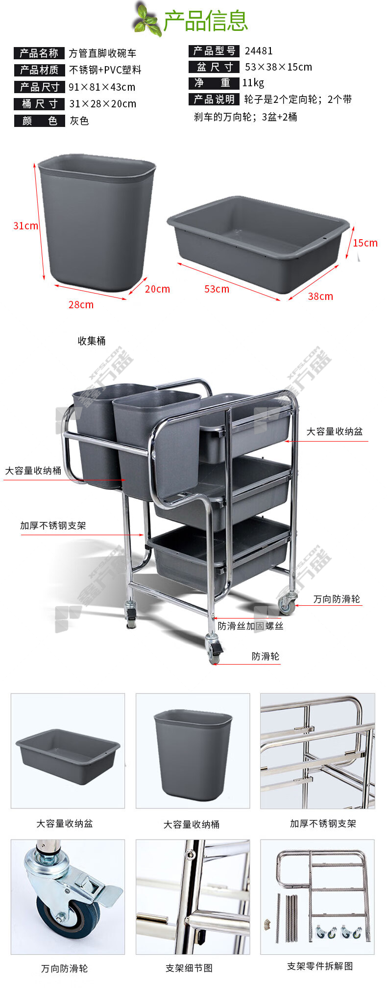 ansery 24481 stainless steel dining cart 24481 91 *81*43cm gray no specification