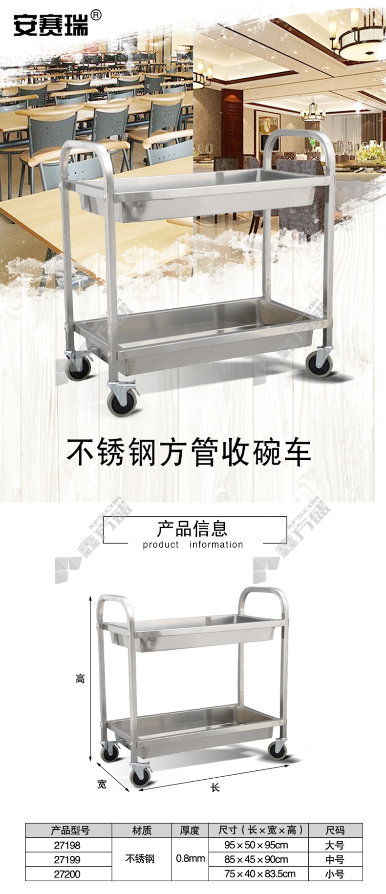 ansery 27199 stainless steel bowl collecting cart 27199 85 *45*90cm medium silver white no specification