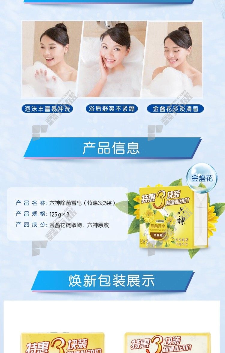 liushen special three-piece antibacterial soap 125 g*3 calendula 125 g*3/lily
