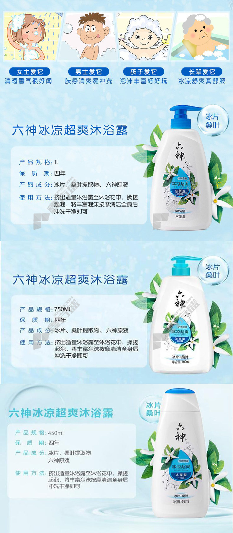 liushen borneol mulberry leaf cooling super refreshing shower gel 1 L 200ml