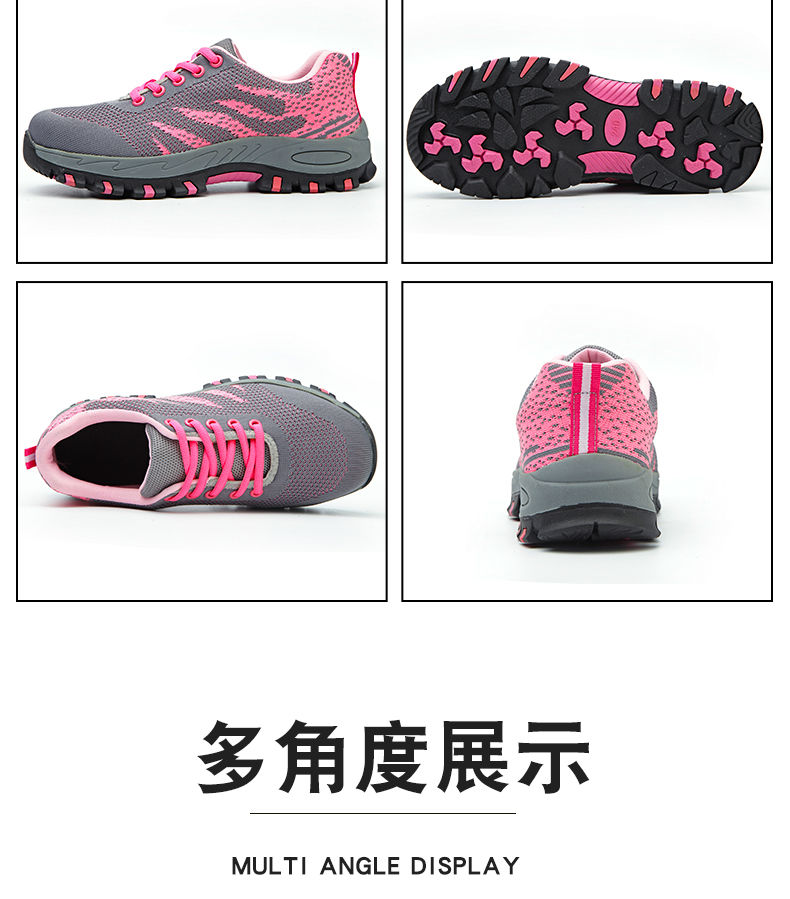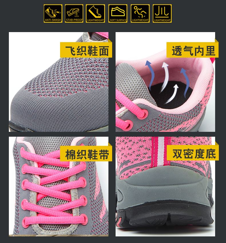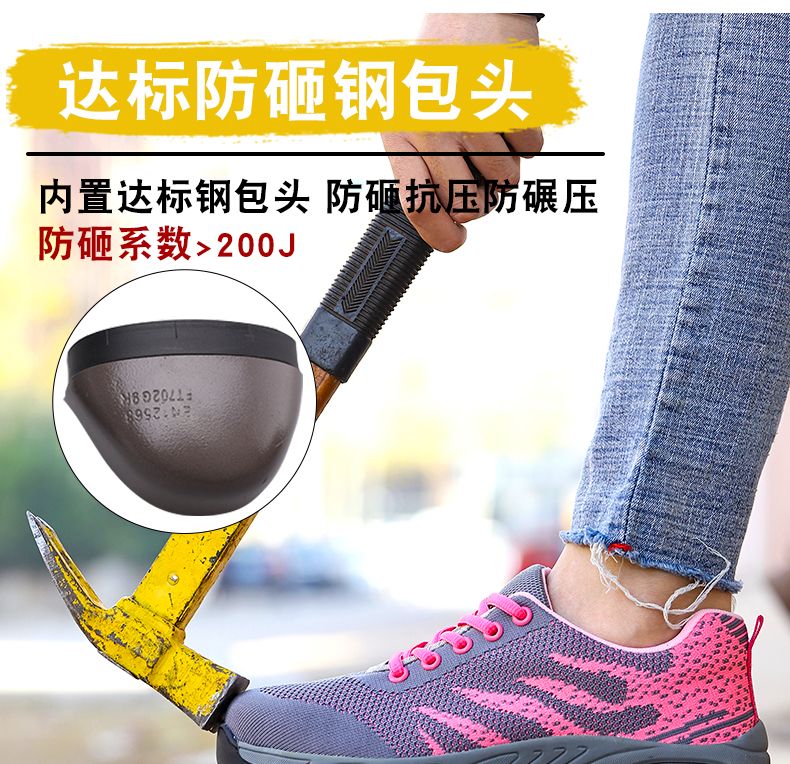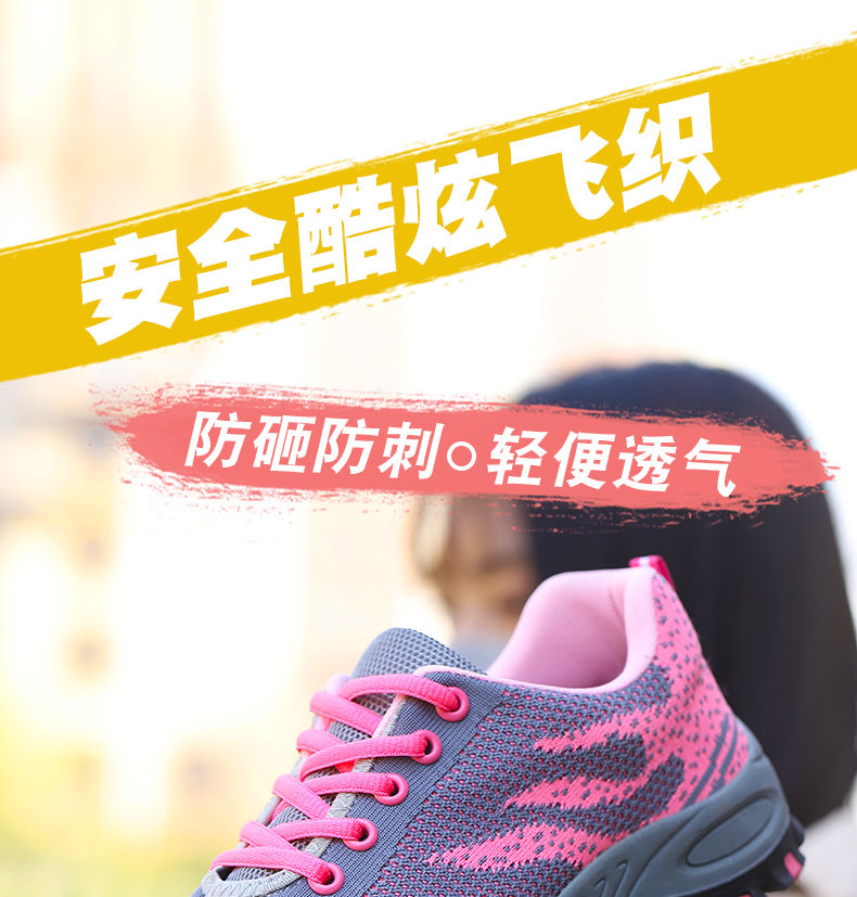 labor protection shoes for women, steel toe caps, anti-smash and anti-puncture, summer fashion, breathable, deodorizing, lightweight, cowhide sole, wear-resistant work shoes 203 pink flying weave - anti-smash and anti-puncture +34