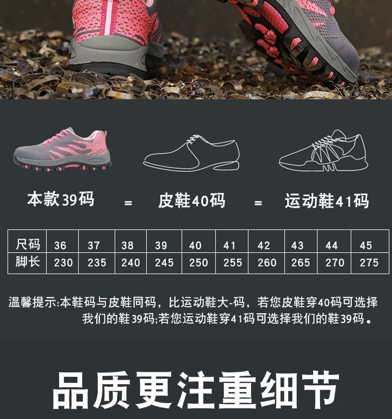 女式劳保鞋,防砸防刺的,穿上脚很舒服,不是特别的重,,透气,质量很好