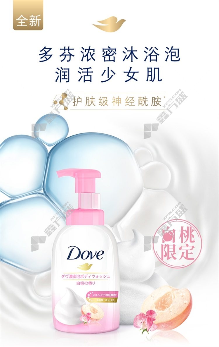 dove white peach fruity rich shower bubble 400 ml no specifications