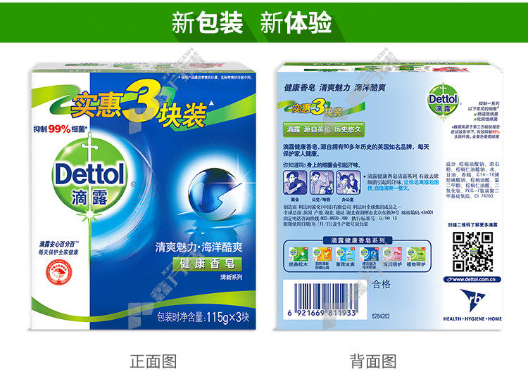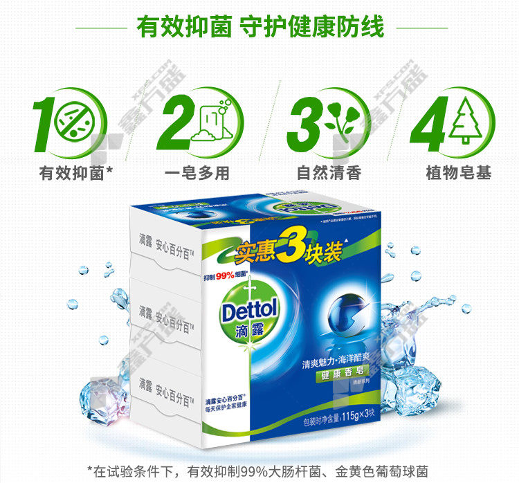 dettol refreshing charm ocean cool healthy soap 115 g*3 125g