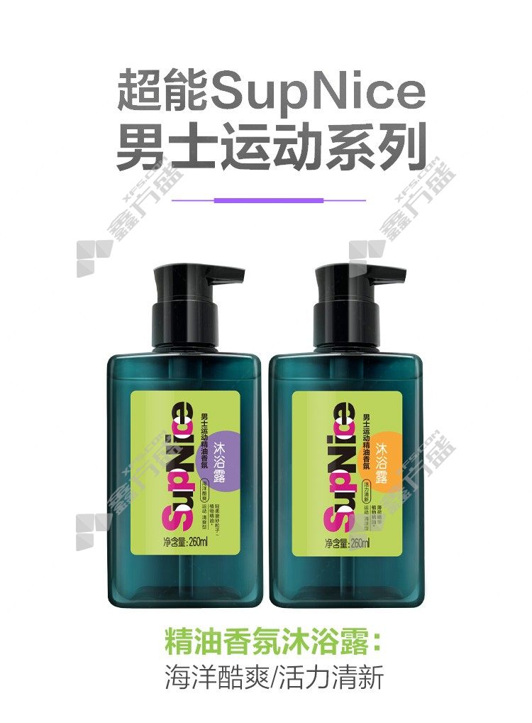 super power supnice men's sports essential oil fragrance shower gel (vitality and freshness )260ml (ocean cool )600ml