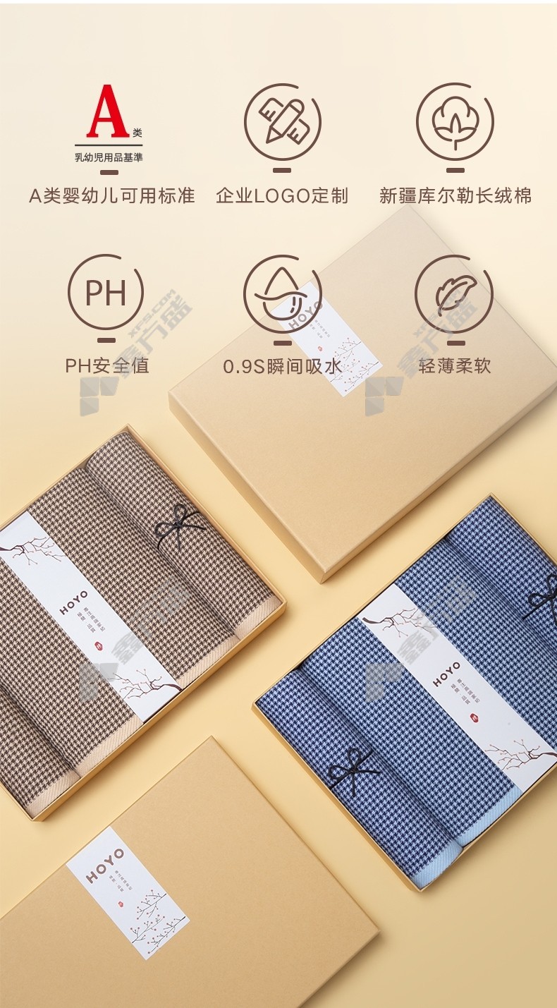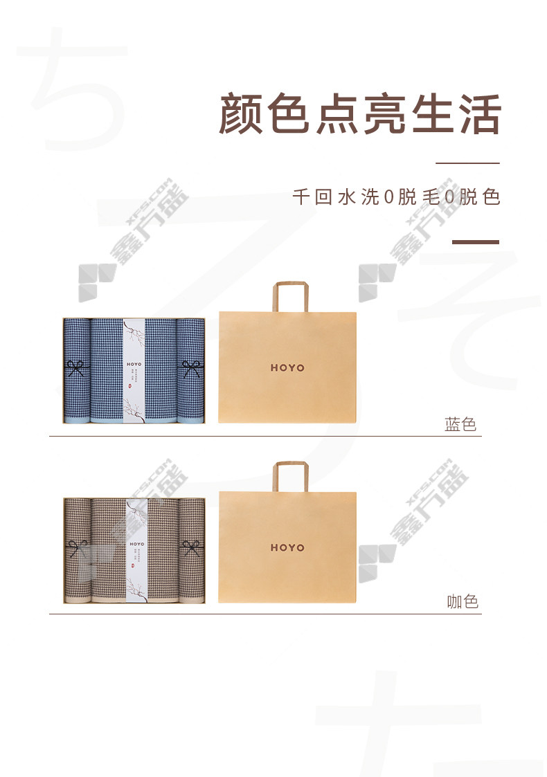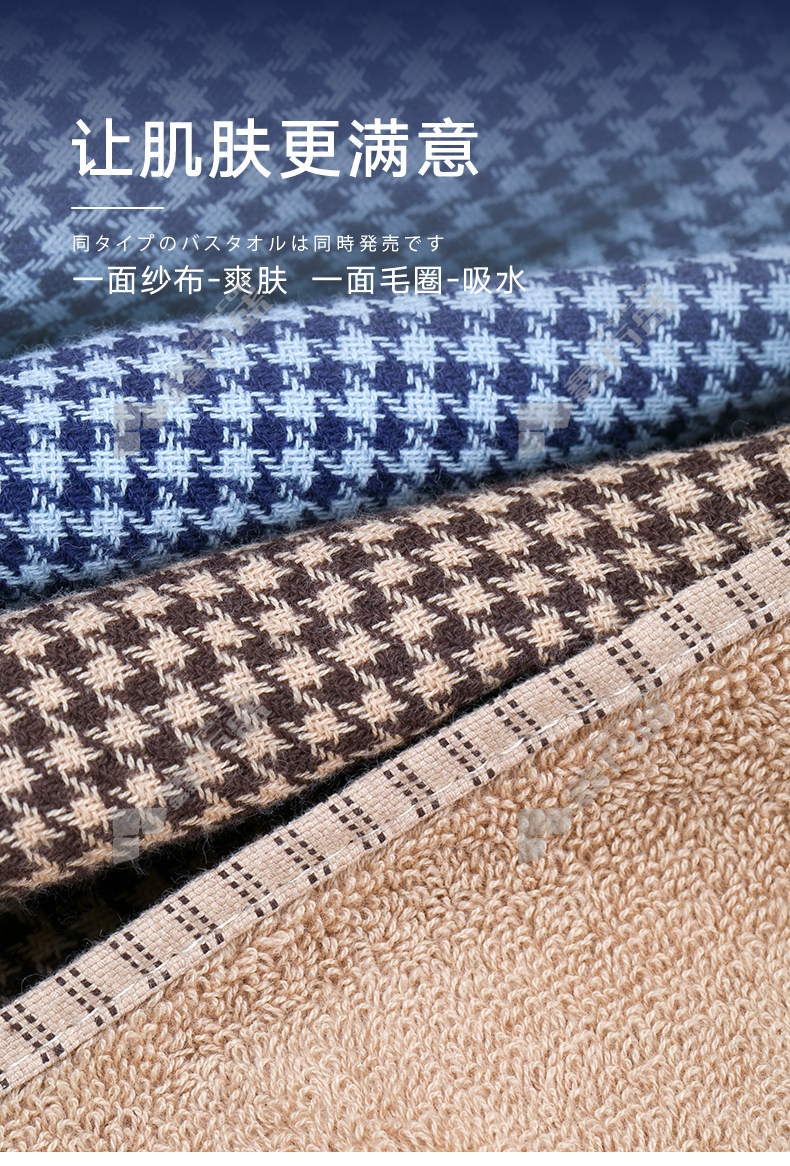 HOYO houndstooth towel bath towel 3-piece set 7099 70 *140cm coffee towel 1 towel 2 70 *140cm/1 blue bath towel 2 towels