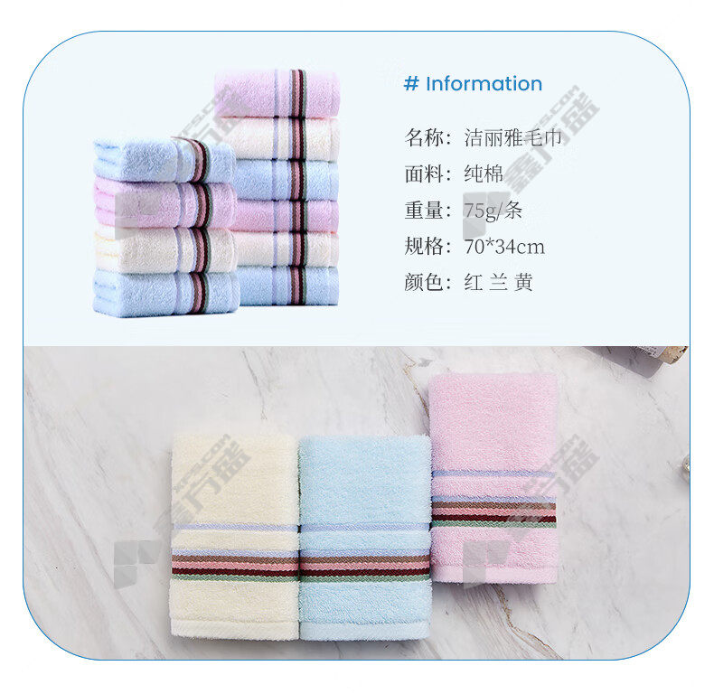 jieliya pure cotton plain satin towel 7499 74 *33cm 7498/74*33cm