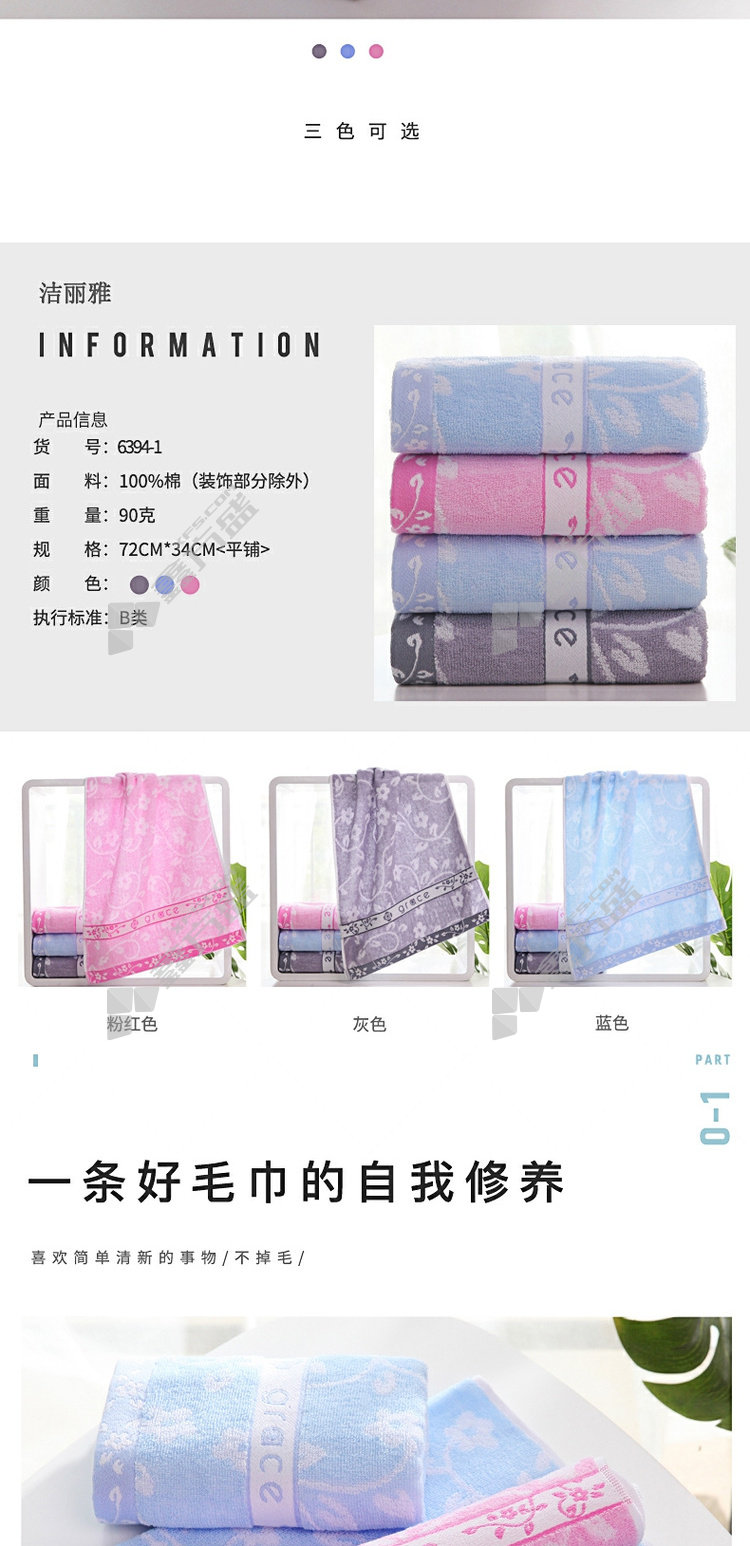 jie liya GRACE pure cotton super absorbent comfortable facial towel 6394 90 g 1 strip /package 6394 72 *34cm no specifications