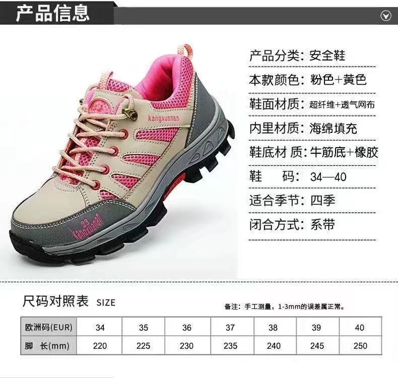 labor protection shoes for women in summer, ultra-light, breathable, deodorizing, wear-resistant, steel toe, steel sole, anti-smash and anti-stab, ladies' protective winter shoes, powder mesh solid sole, anti-smash and anti-stab +35