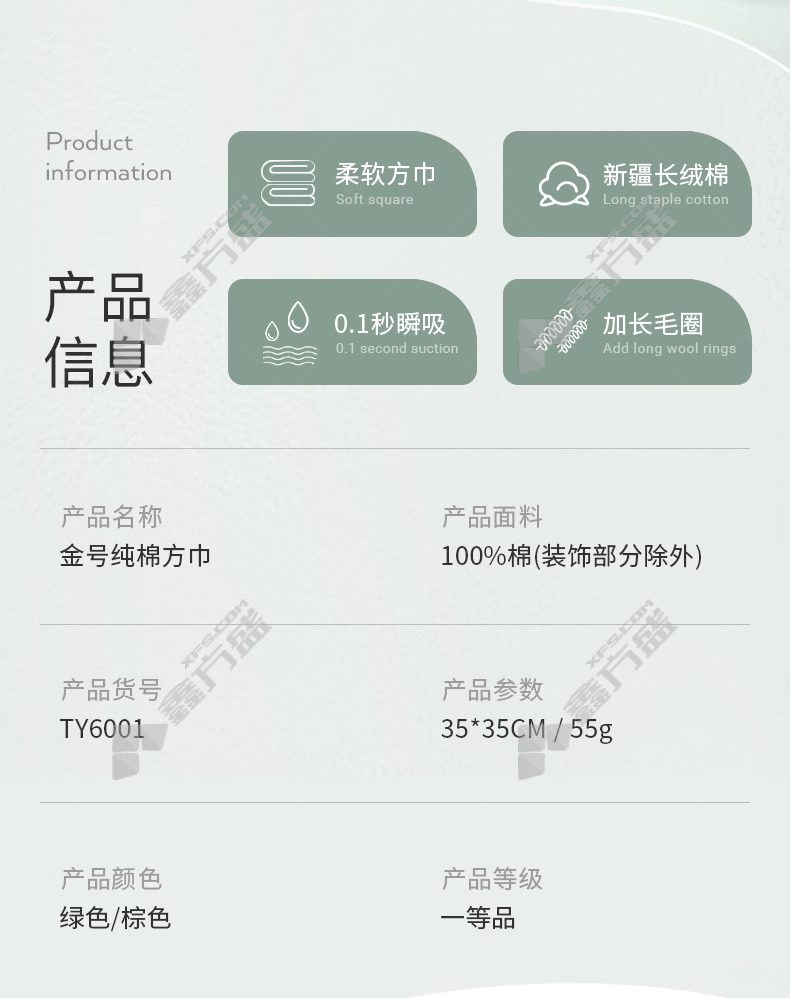 gold cotton hanging square soft absorbent towel TY6001 35*35cm brown TY6001/35*35cm/green