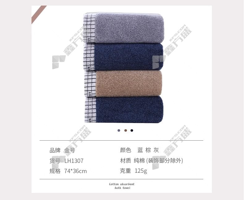 gold size pure cotton household face towel for adults and men LH1307 74*36cm blue LH1307/74*36cm/grey