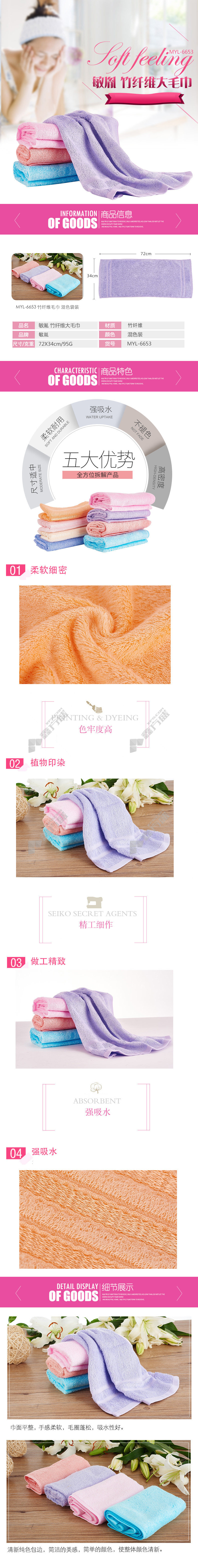 min yin MYL-6653 bamboo fiber towels in random colors g34*72cm(strip ) 95g 10strip /bag has no specifications