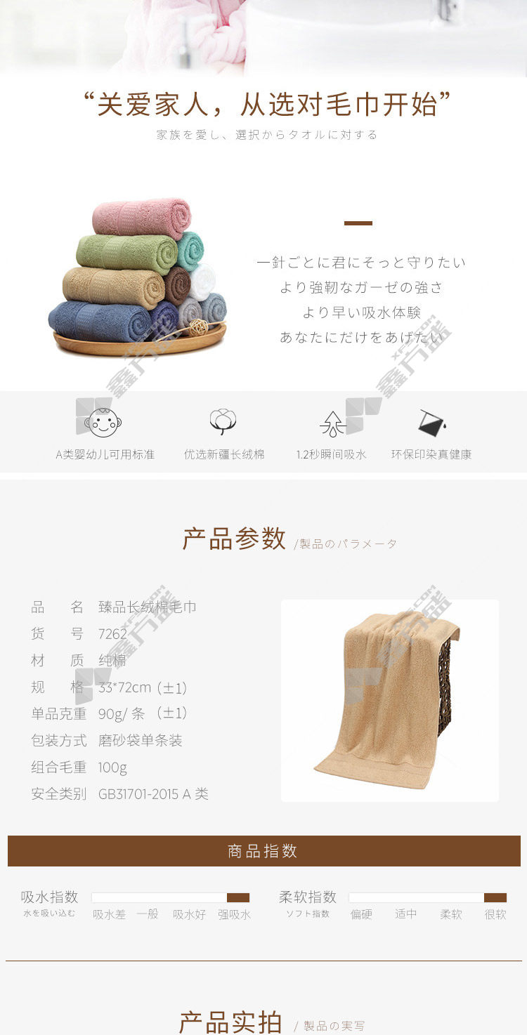 HOYO premium long-staple cotton towel 7262 33 *72cm light gray 1 strip 33 *72cm/1 piece of milky white