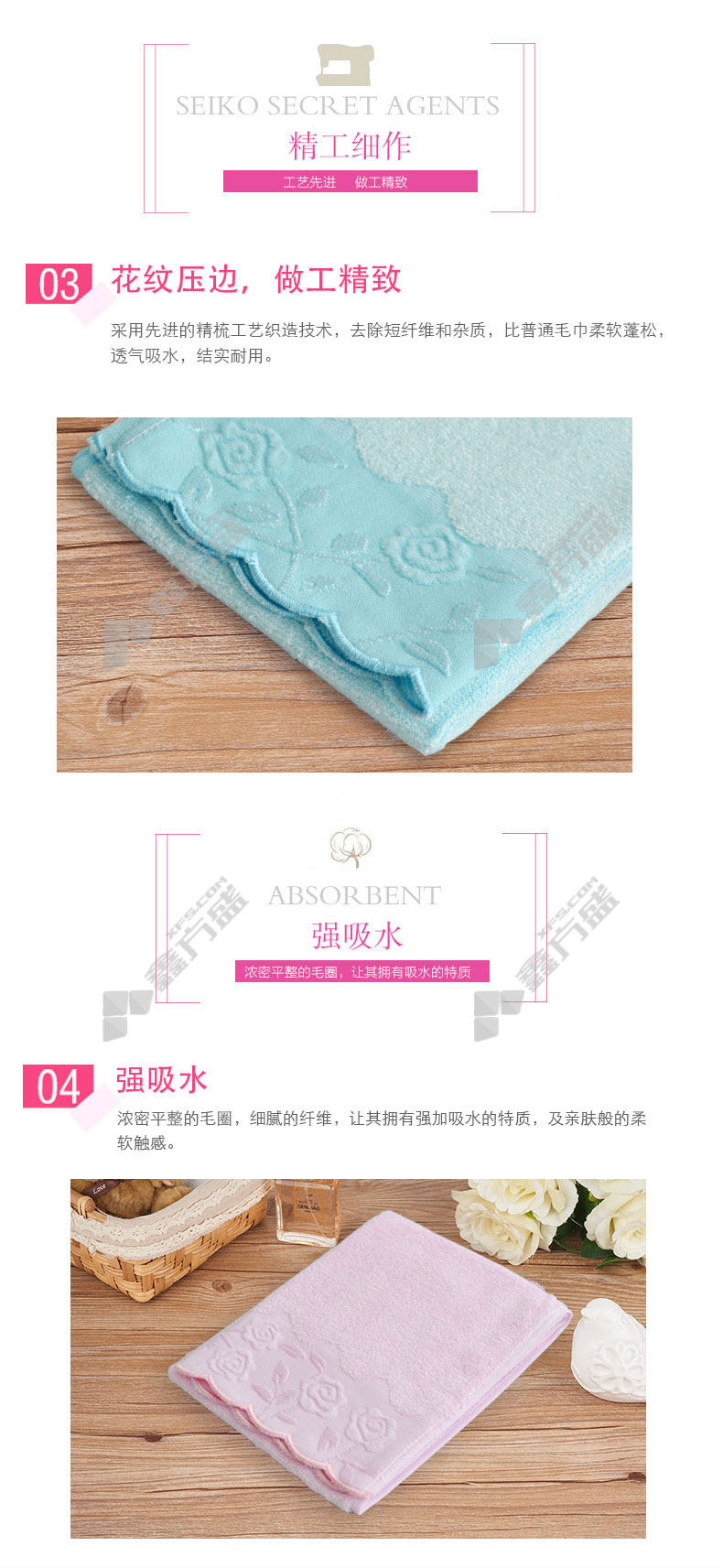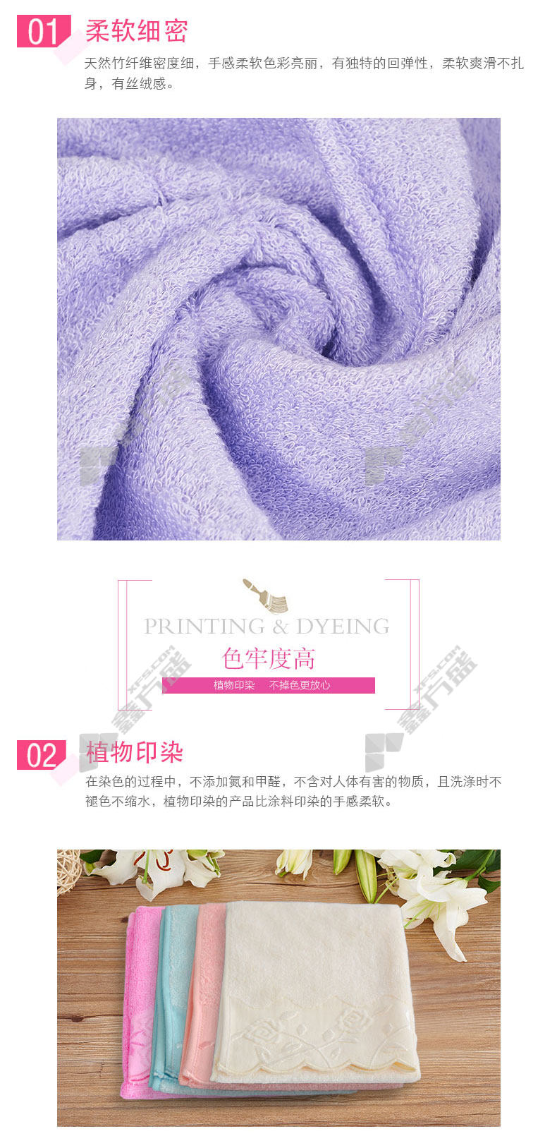 min yin MYL-6656 bamboo fiber lace medium towel MYL-6656 30*60cm mixed color 90 g no specifications