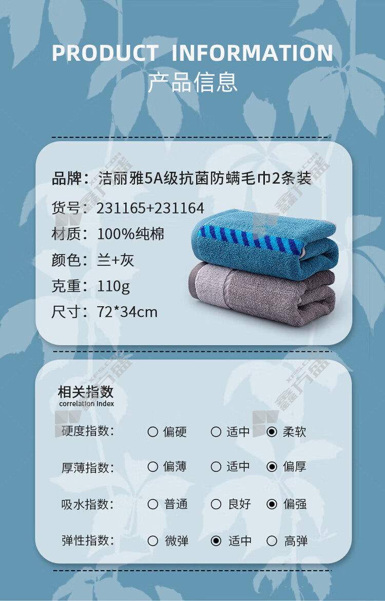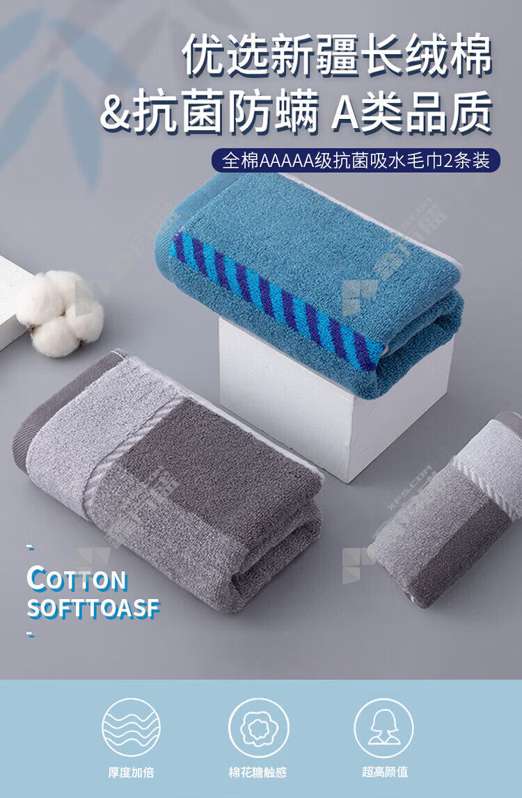 jialiya pure cotton towel men's 2-pack anti-bacterial, anti-mite, water-absorbent, thickened towel for face washing and bathing 231164 no specifications
