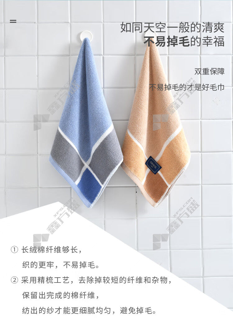 jie liya 2-pack pure cotton thickened plaid soft strong water-absorbent face wash towel 220055 towel home textile no specification