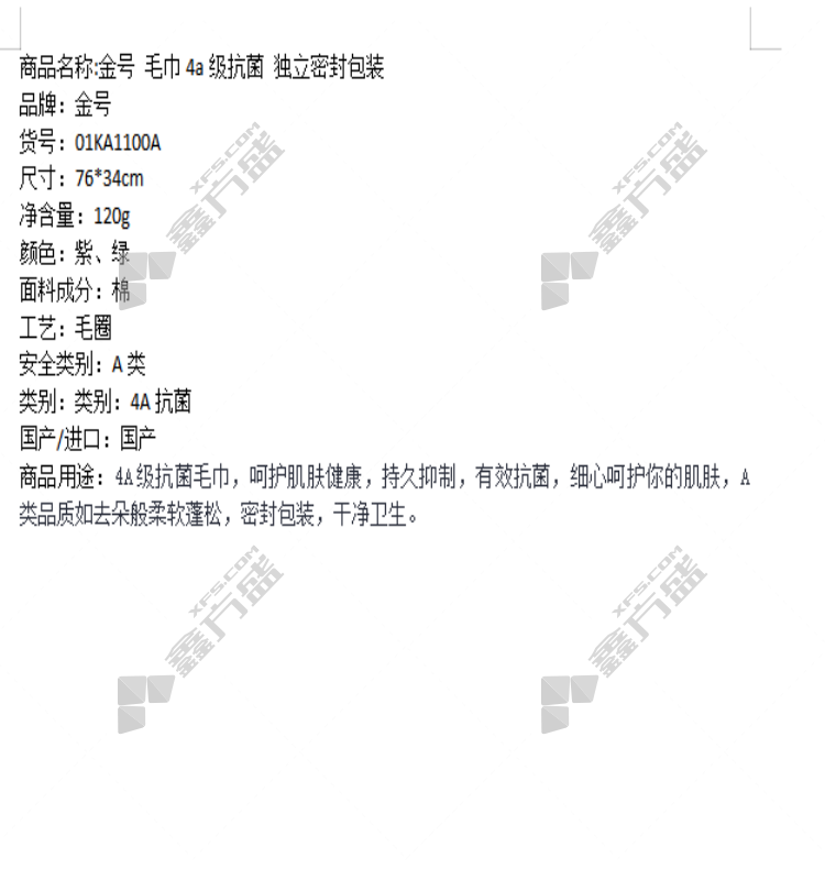 gold towel 4 a grade antibacterial independent sealed packaging 01 KA1100A no specifications