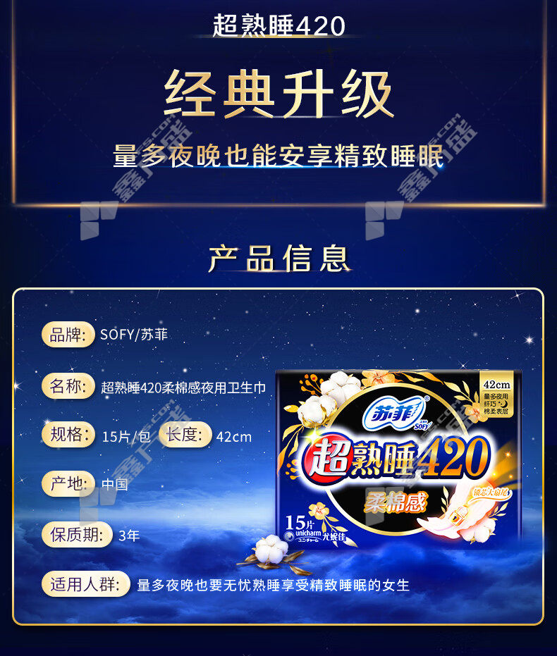 sophie extra long night sanitary napkin 420 mm 4 piece /package has no specifications