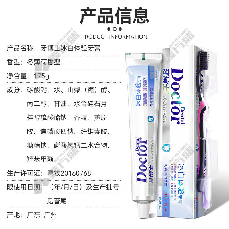 dr. tooth's old-brand domestic toothpaste and toothbrush set whitens yellow and freshens breath 175 g+2toothbrush mint flavor 175 g toothpaste +2toothbrush mint flavor no specification