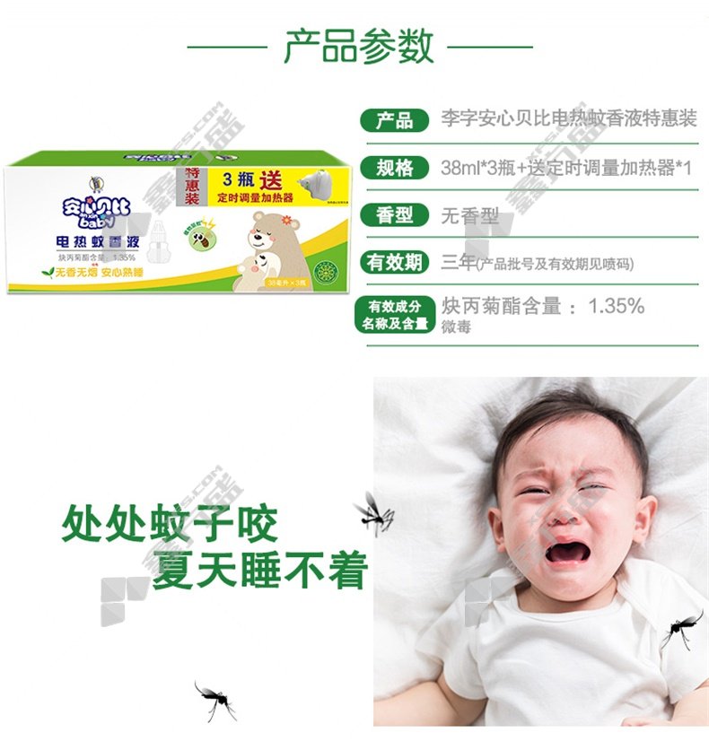li zi an xin bei bei unscented electric mosquito repellent liquid +timing volume heater set 38 ml*3+1 no specifications