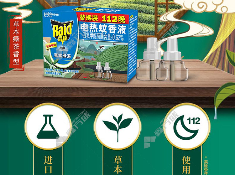 radar electric heated mosquito repellent liquid wireless device herbal green tea fragrance refill 32 nights 1 +(21+8.4)ml*2 no specifications