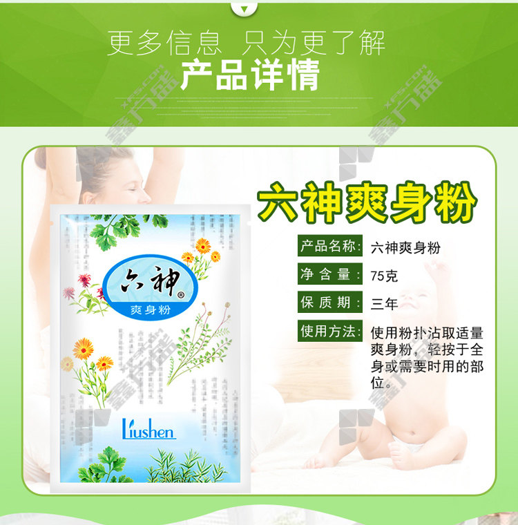 liushen prickly heat removal powder 75 g no specifications in bags