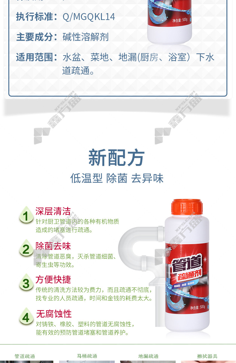 jingbaili pipe dredging agent /detergent powder 500 g no specifications