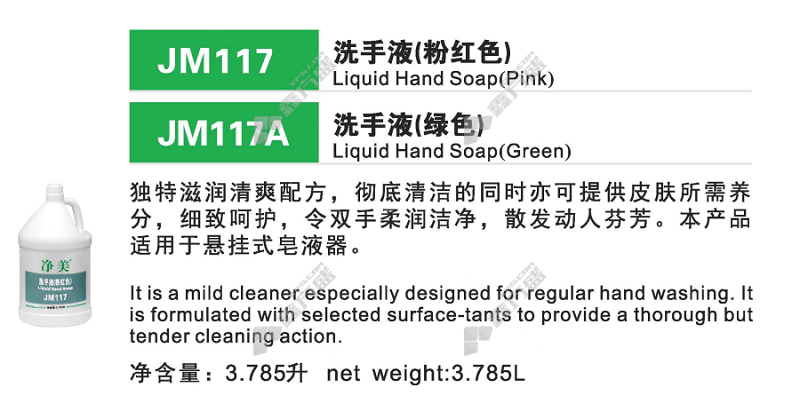 baiyun jingmei hand sanitizer JM117A green 3.78 L fresh fragrance JM117 pink /3.78L/fragrance