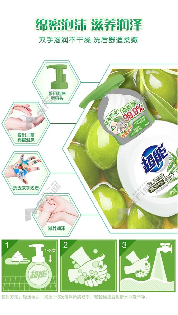 super moisturizing foam antibacterial hand sanitizer medium bottle 258 ml olive leaves have a light fragrance without specifications