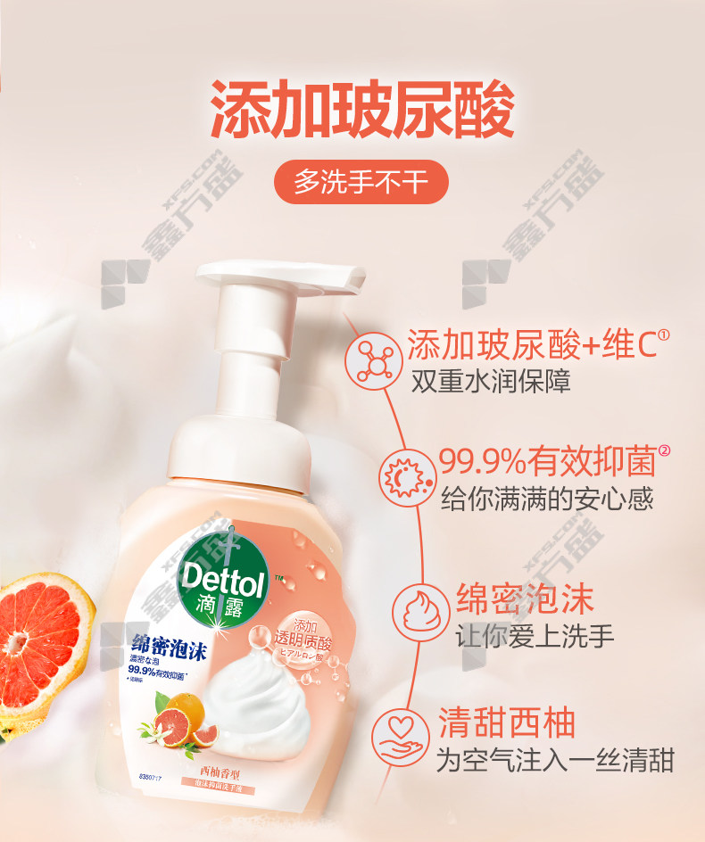 dettol hyaluronic acid foaming hand sanitizer grapefruit fragrance +floral 250 ml no specifications
