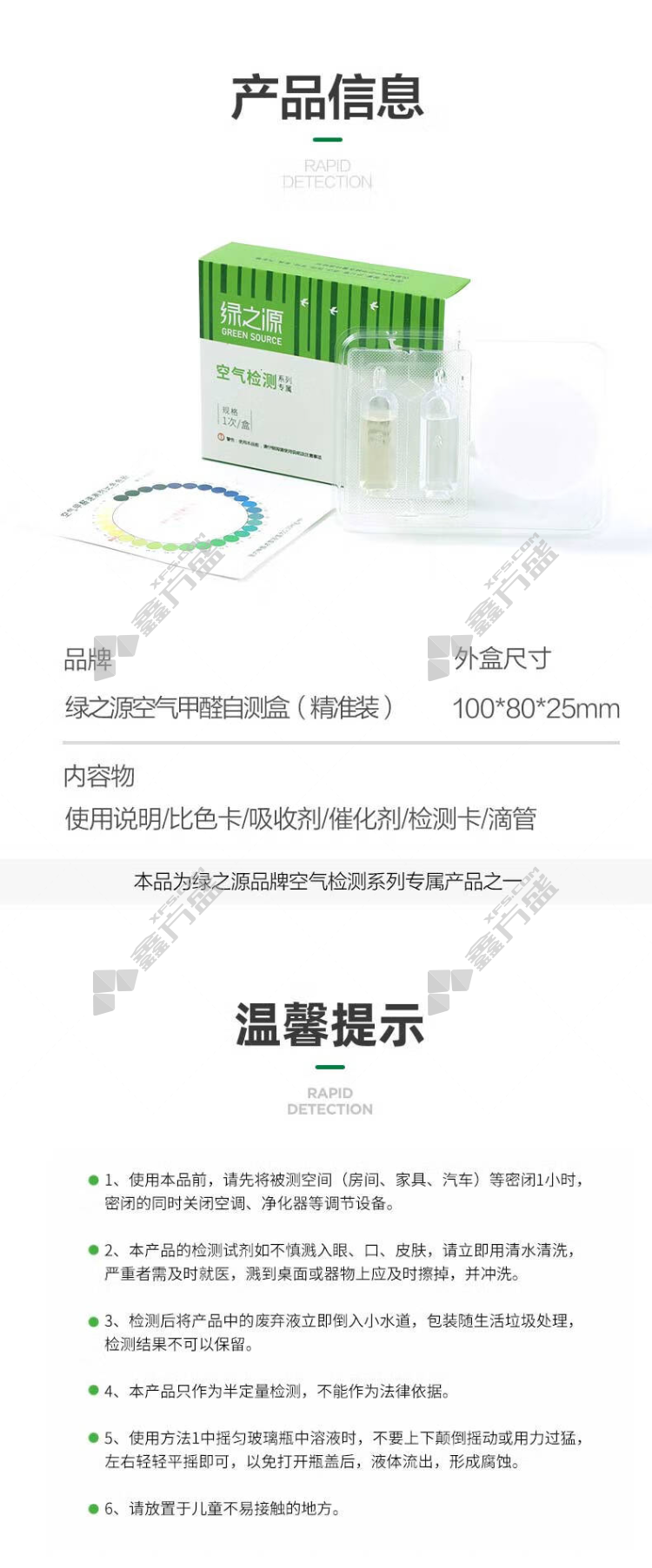 green source formaldehyde test kit Z-0434 20g no specifications
