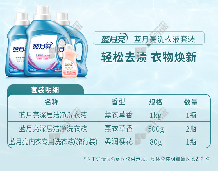 blue moon lavender cleansing combination laundry detergent 1 kg+lavender cleansing laundry detergent 500 g*2+soft sakura laundry detergent for underwear (travel size) 80 g the set has no specifications