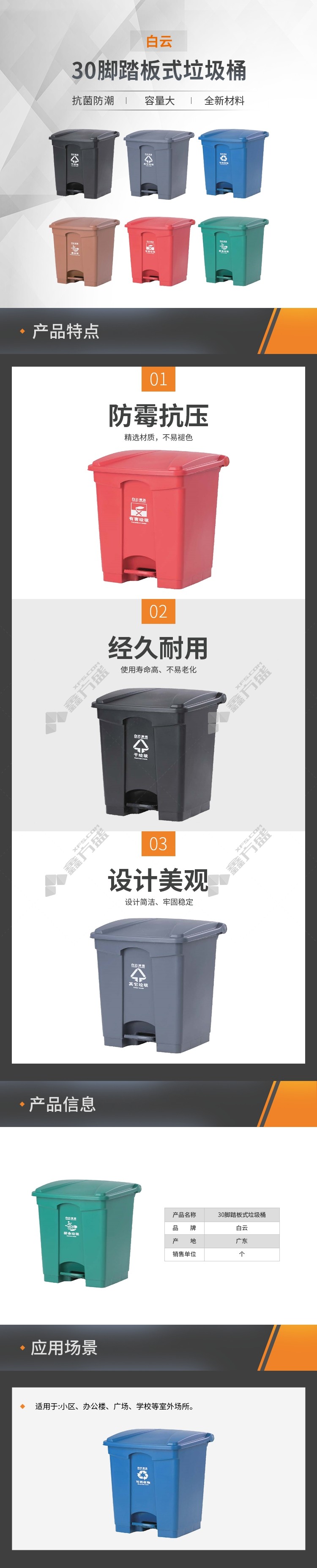baiyun pedal type trash can small size 41 *39.8*43.5cm 30L grey 41*39.8*43.5cm/30L/grey