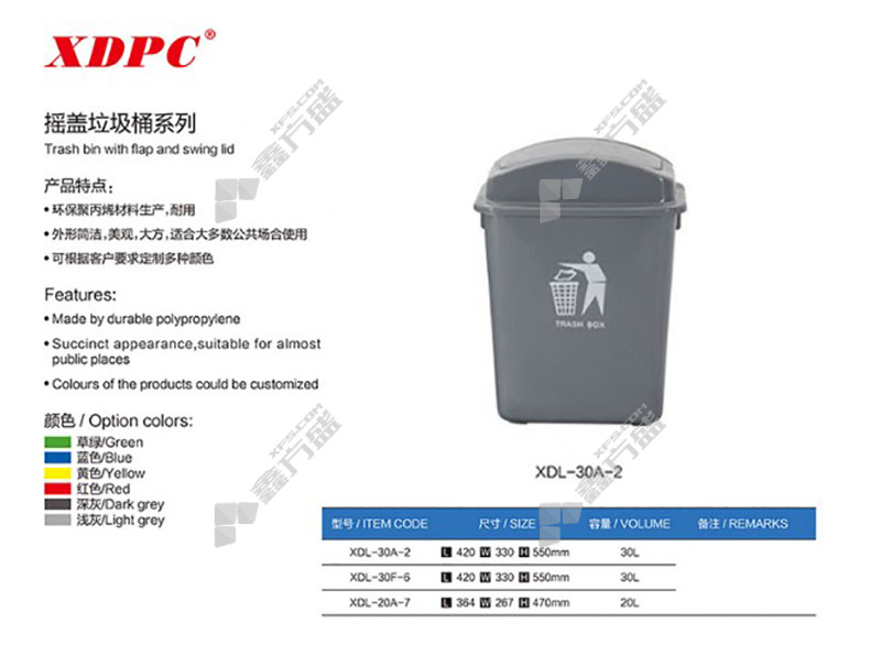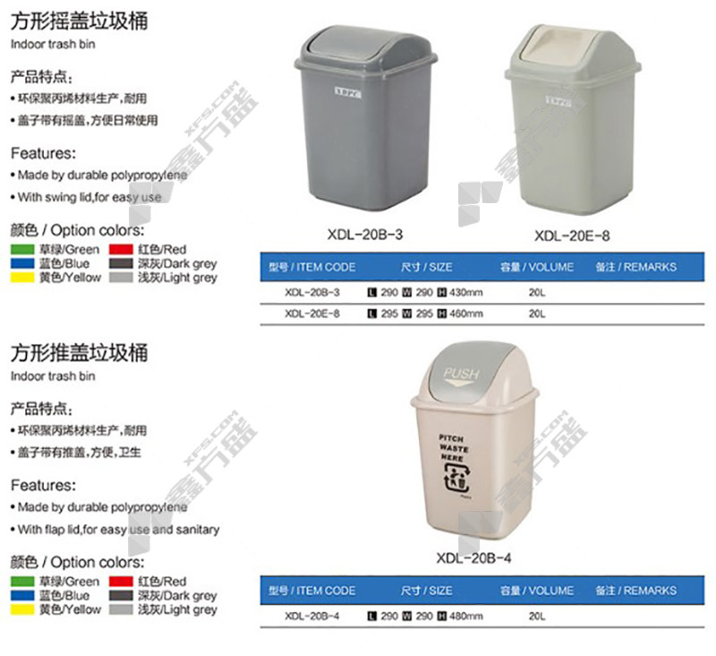 xinding square swing lid indoor trash can XDL-20B-3 harmful 20 L red XDL-20B-3 recyclable /20L/blue