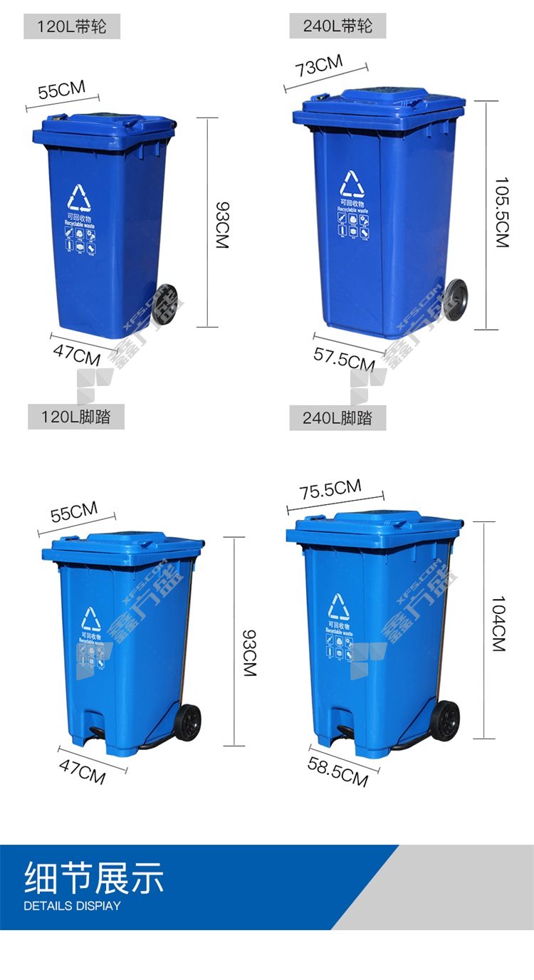 baiyun 240l foot-operated sorting trash can AF07603 73.5*57.5*109cm green AF07603/73.5*57.5*109cm/red