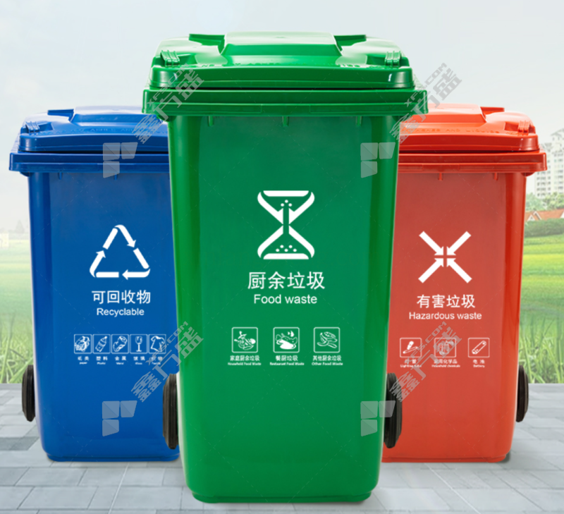 plastic trash can with lid and wheels for recyclable garbage 240 L blue recyclable garbage /240L/blue