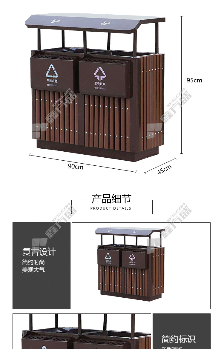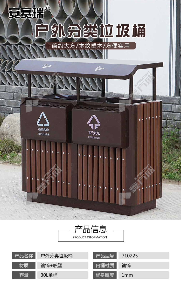 ansery 710225 double barrel steel and wood trash can 710225 brown 45 *90*95cm 60L no specifications