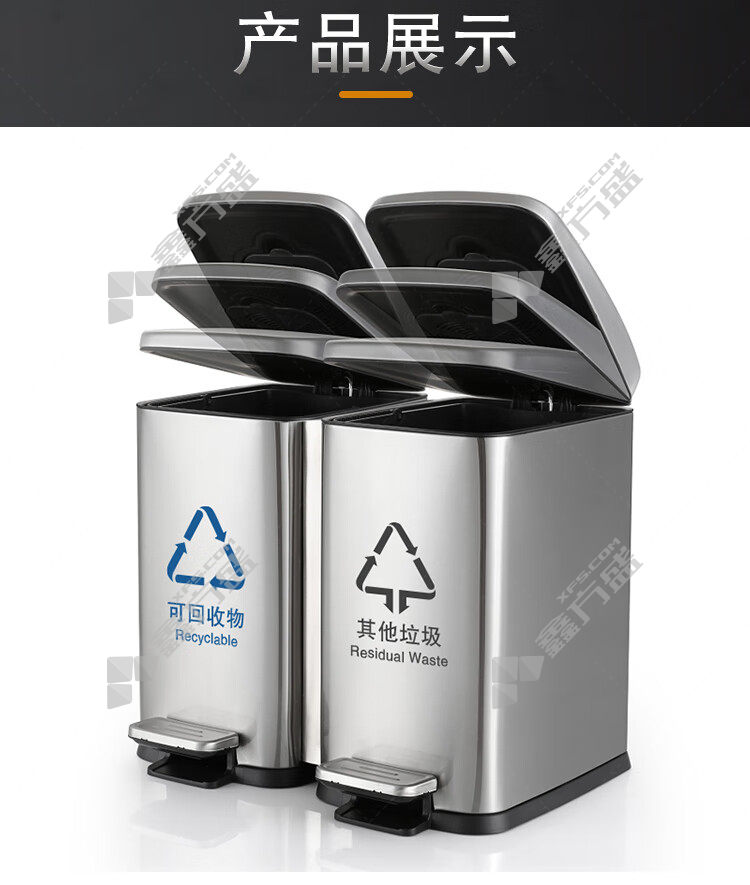 ansery 700183 stainless steel classified foot-operated trash can 700183 30 L*3 65.5*35.2*38.6cm true color without specifications
