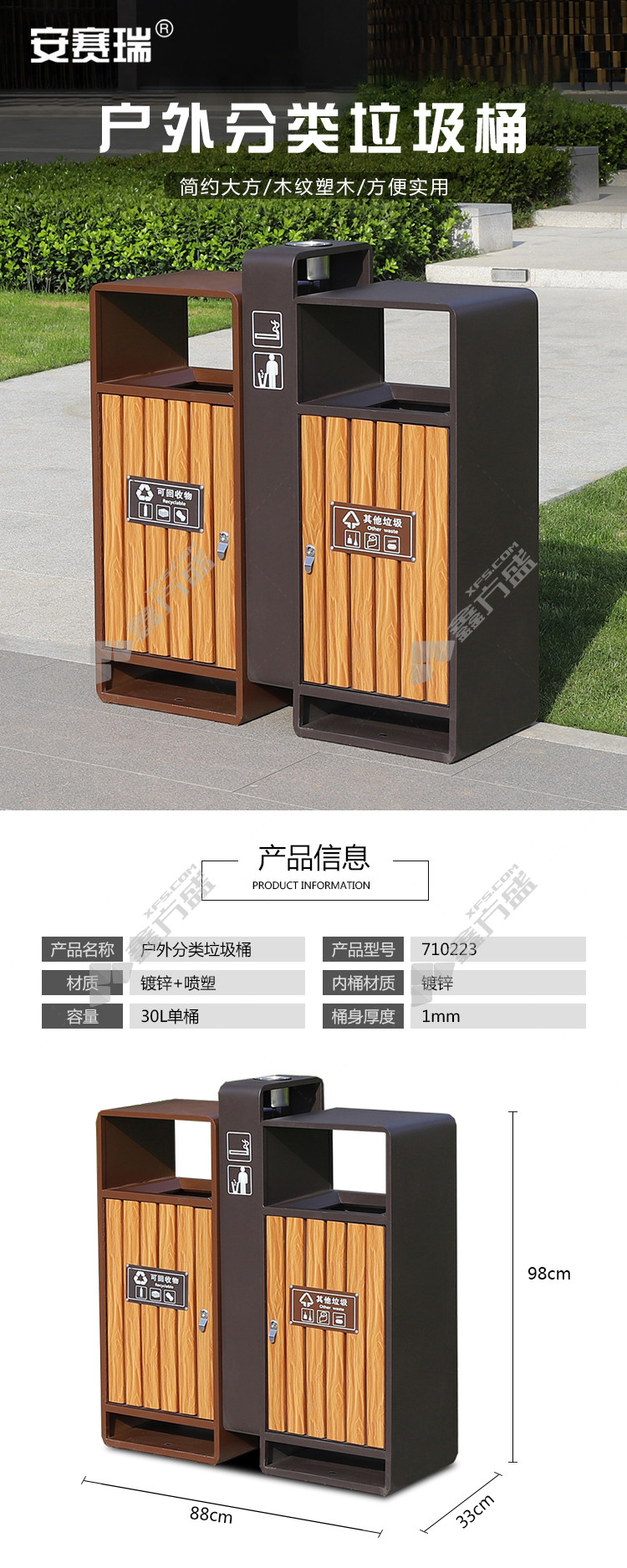 ansery 710223 outdoor classified steel and wood waste bin 710223 brown 33 *88*98cm 60L no specifications
