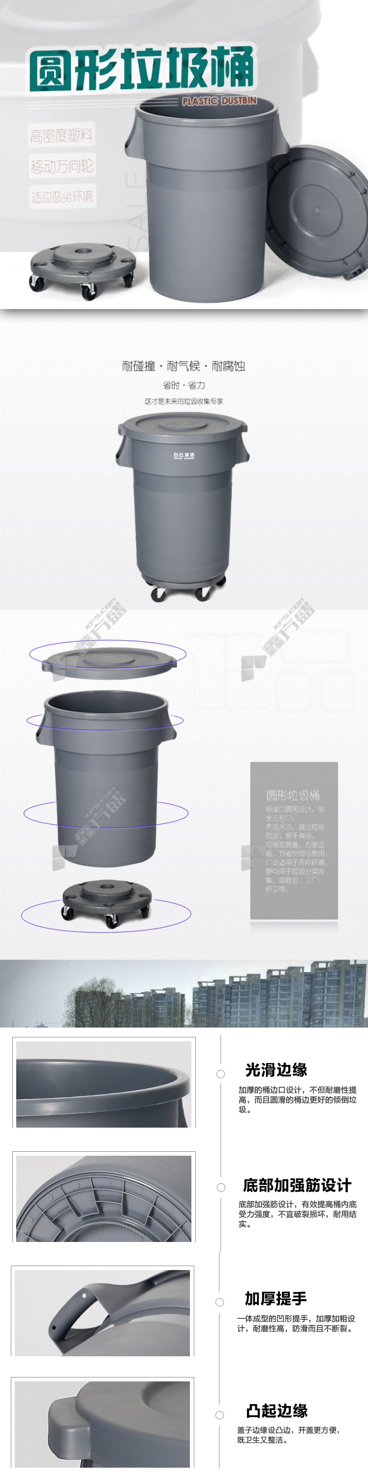 baiyun 120l round trash can without base AF07509 120L grey AF07509/120L/grey