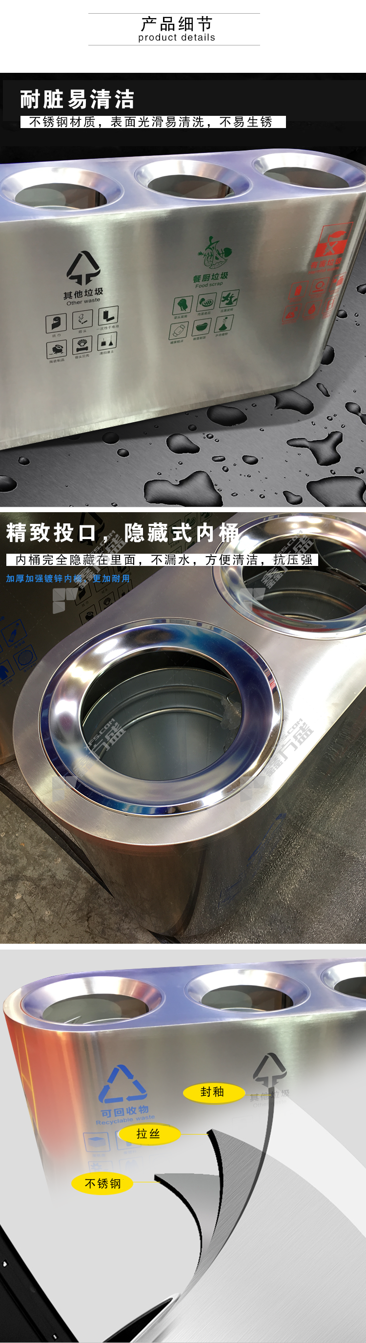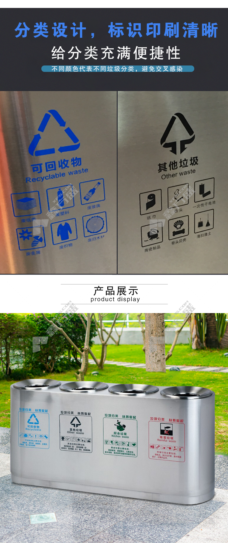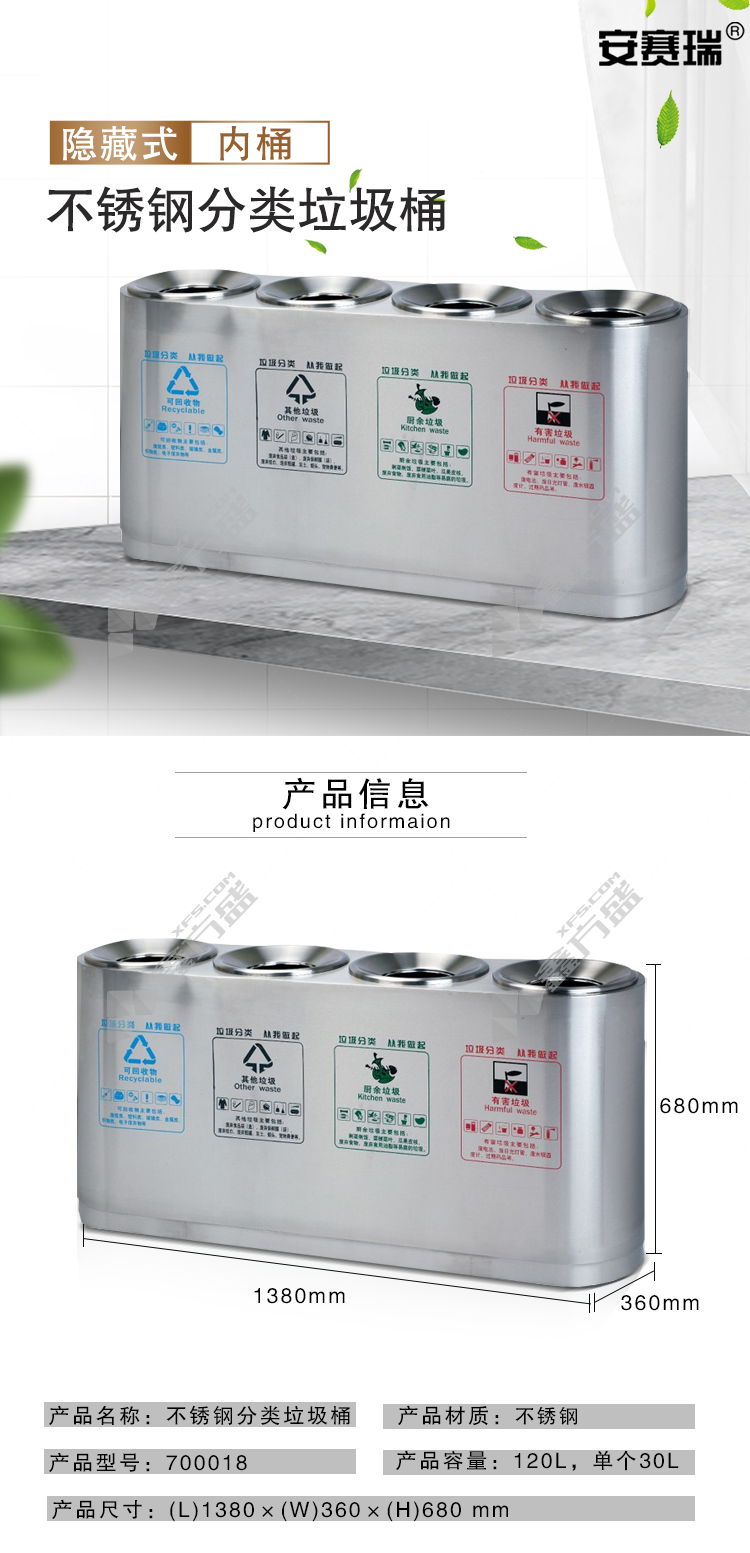 ansery 700018 outdoor stainless steel classified trash can 700018 138 *36*68cm 30L*4 silver no specification