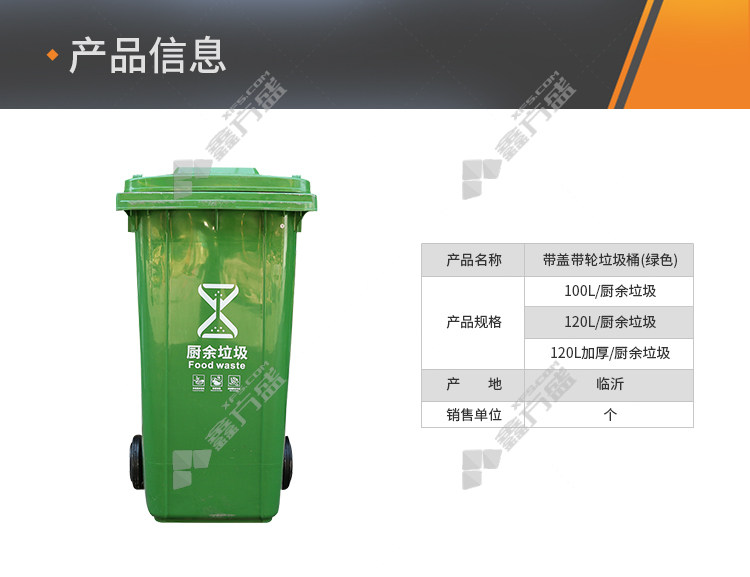 green kitchen waste wheelie bin with lid 120 L single product has no specifications