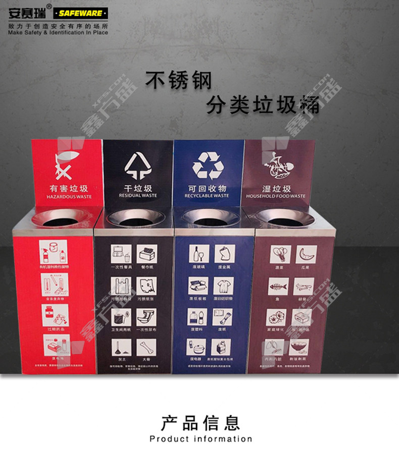 ansery 24411 stainless steel four-category trash can 24411 35 *35*75cm 50L black no specification