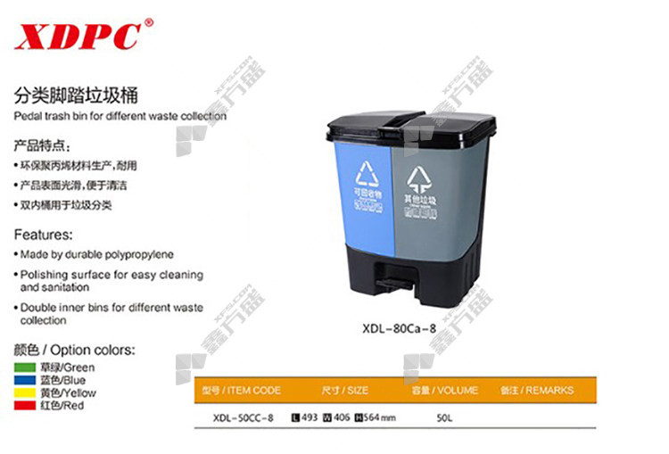 huyang high-quality classification pedal combination trash can 50 L recyclable 493 *406*564mm 50L blue kitchen waste 493 *406*564mm/50L/green