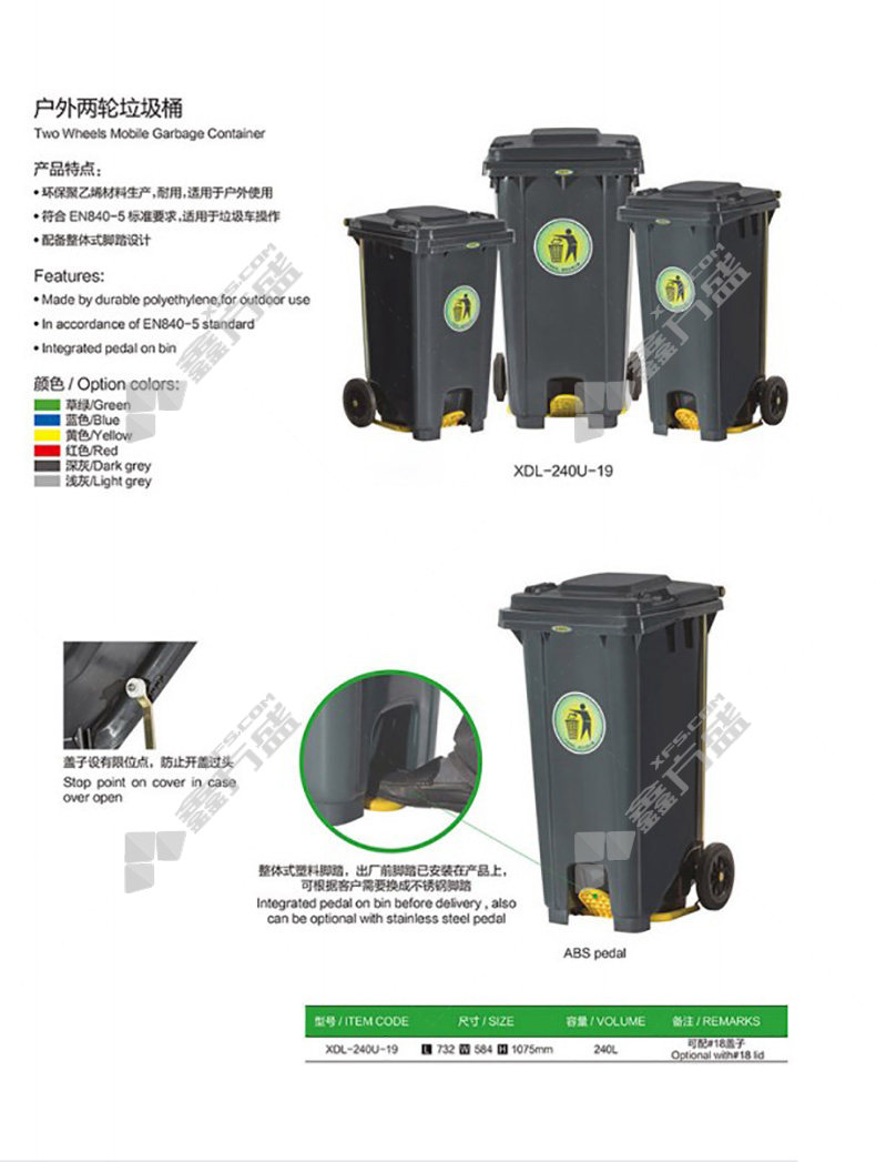 huyang high-quality two-wheel pedal outdoor trash can 240 L others 732 *584*1075mm dark gray kitchen waste /732*584*1075mm/green