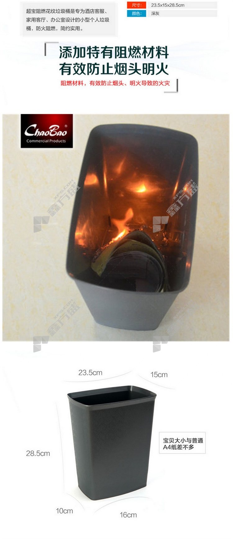 super treasure CHAOBAO fire retardant square pattern trash can gray B-030B B-030B 23.5×16×28.5CM no specifications